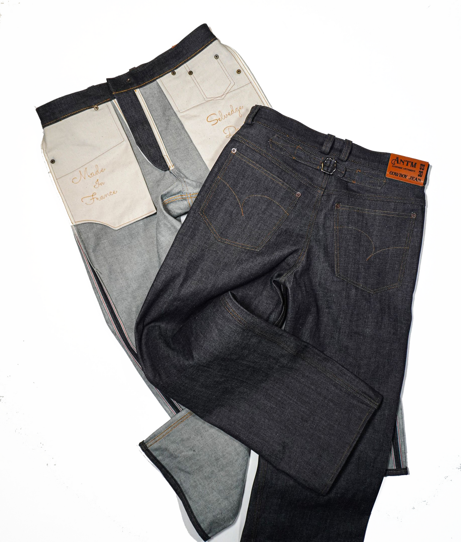 UN PANTALON EN DENIM SELVEDGE BRUT JAPONAIS A LA COUPE DROITE INTEMPORELLE. UNE BOUCLE D'AJUSTEMENT ARRIÈRE, DES POCHES BRODÉES ET UNE CONSTRUCTION EN COUTURES RABBATUES. DE NOMBREUX DÉTAILS A DÉCOUVRIR DANS CETTE PIÈCE DE L'ATELIER.